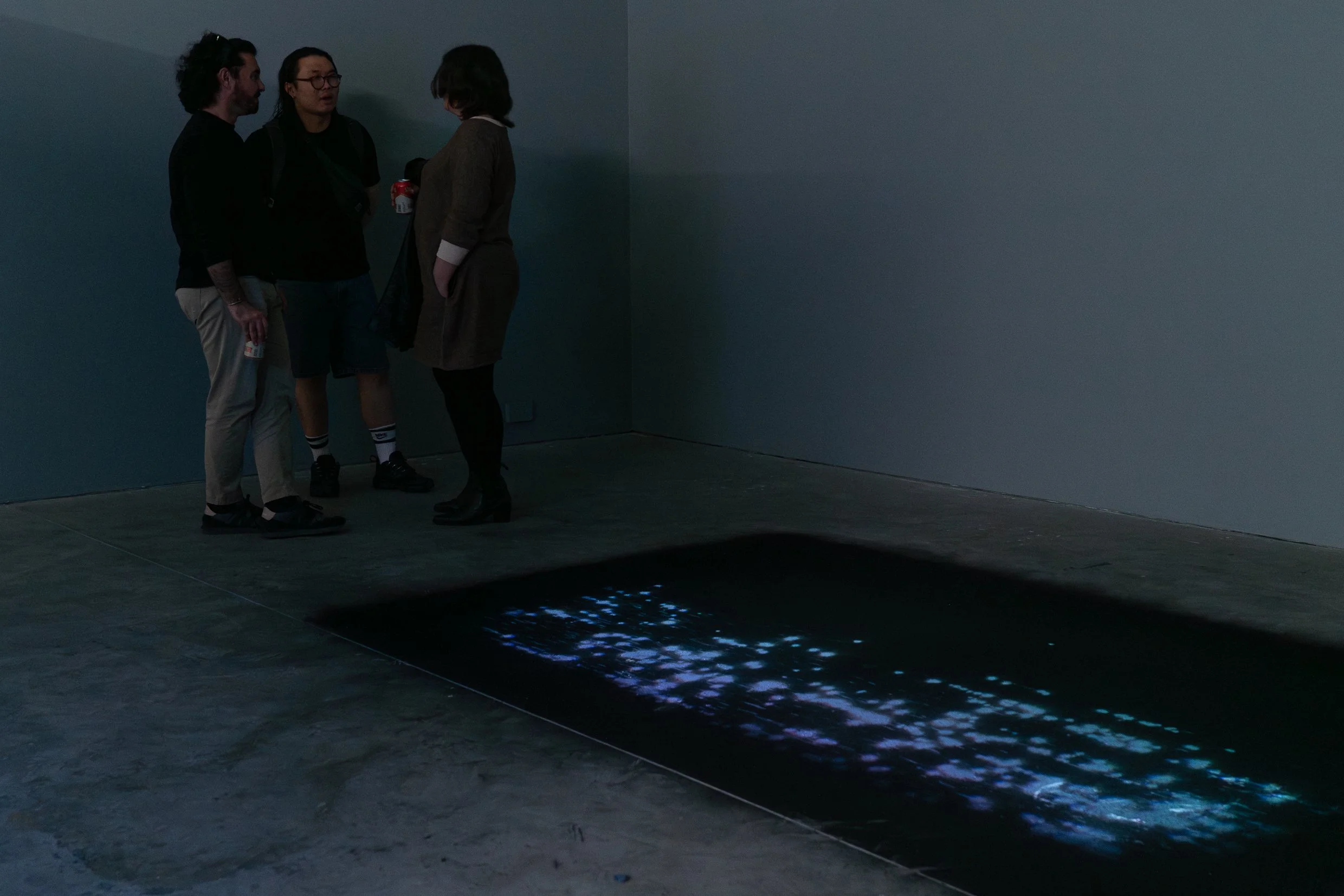 Dungula is central to this new moving image work, reflecting both light and knowledge across interconnected layers of woka (Country). na-nanyak (to dream) (2025) speaks to Aboriginal understandings of time as circular and continuous, without beginning or end, and acknowledges moments where Ancestral knowledge resides. Just as our Ancestors’ knowledge is embedded within woka and Dutala Woka (Sky Country), the Dungula acts as a mirror, reflecting the stars, songlines, and the presence of Yenbena. The light glimmering on the river’s surface evokes the movement of stars, an interplay between water and sky that reveals the layered connections of knowledge and culture.
